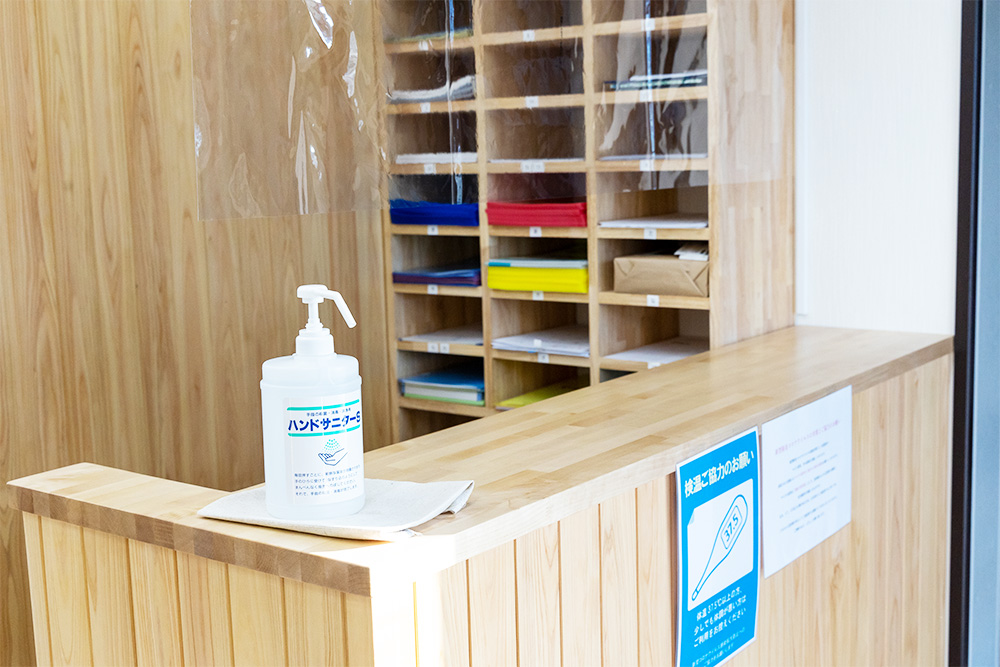 ※現在、マスクにつきましては、より高い感染防止力のため、スタッフは全員、不織布マスクを使用しております。